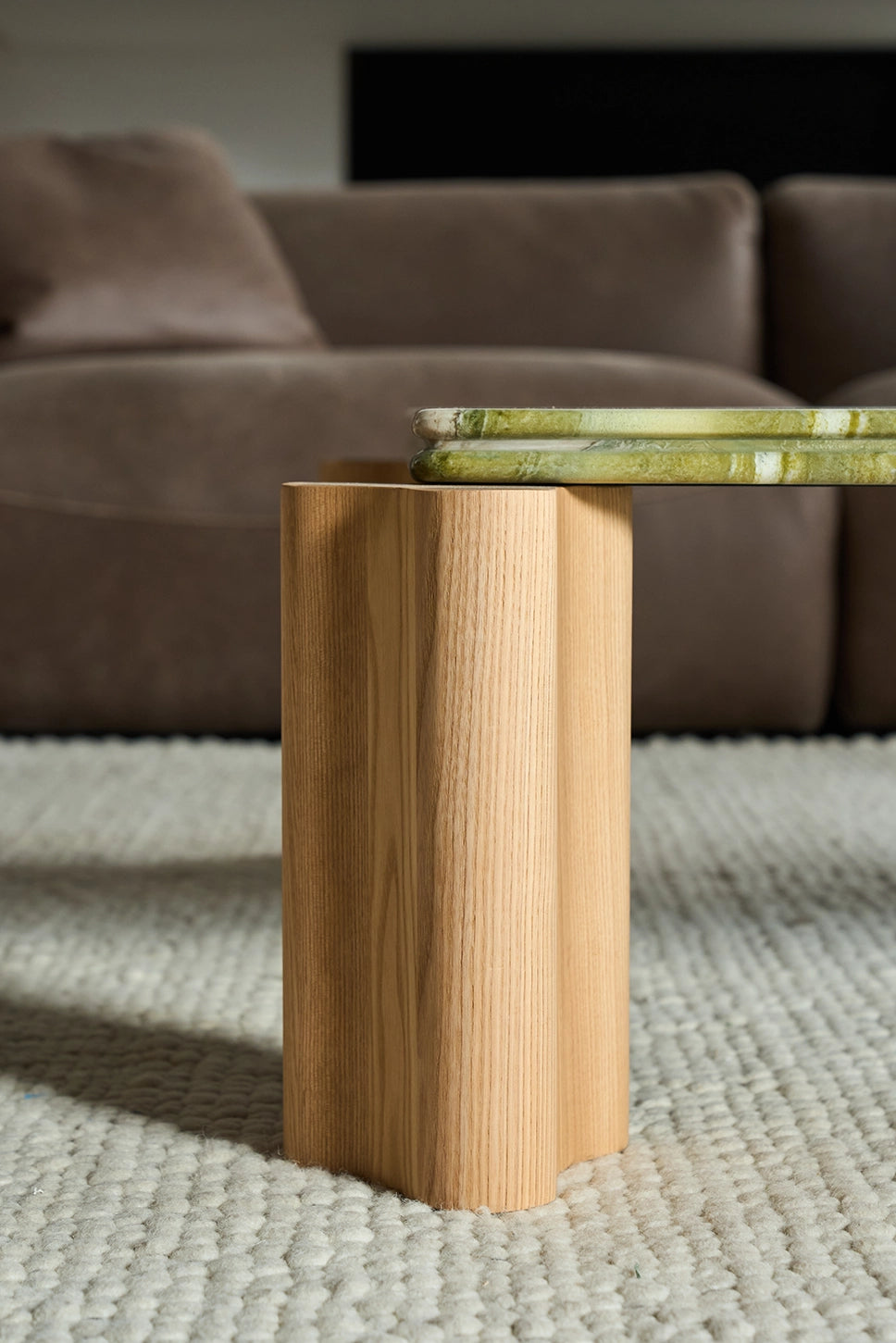 רגלי השולחן עשויים מעץ מלא בגילוף עבודת יד.