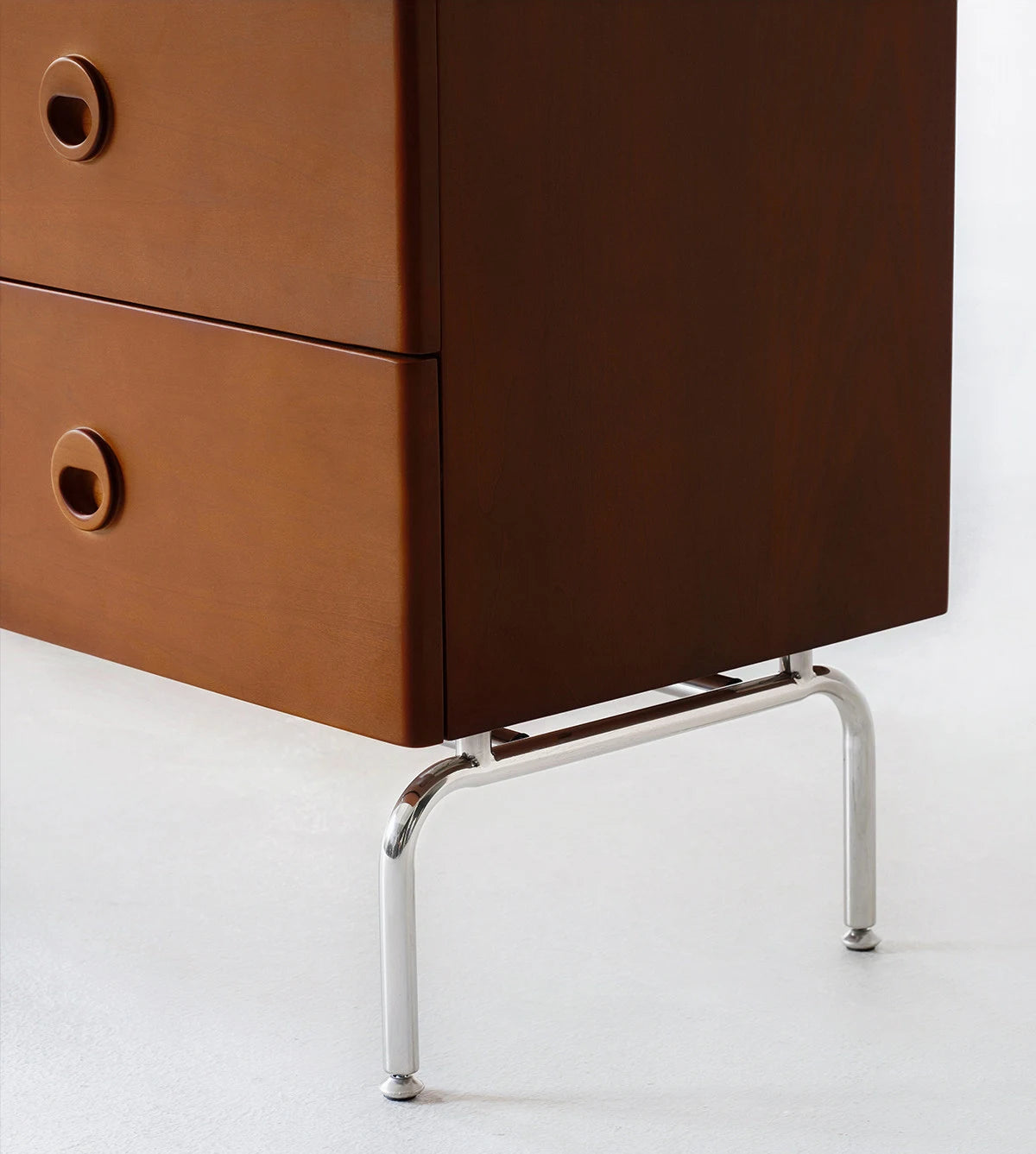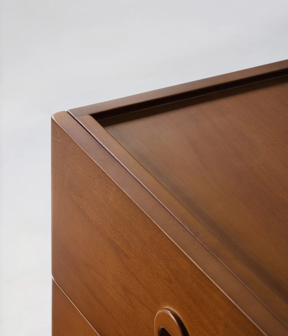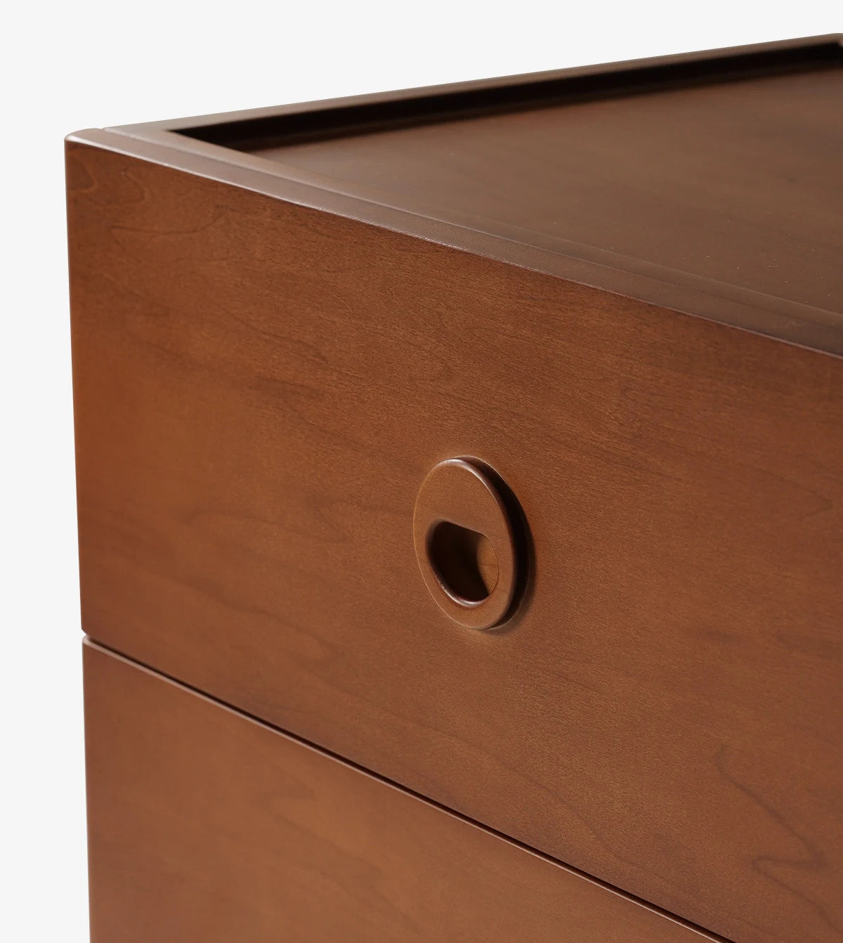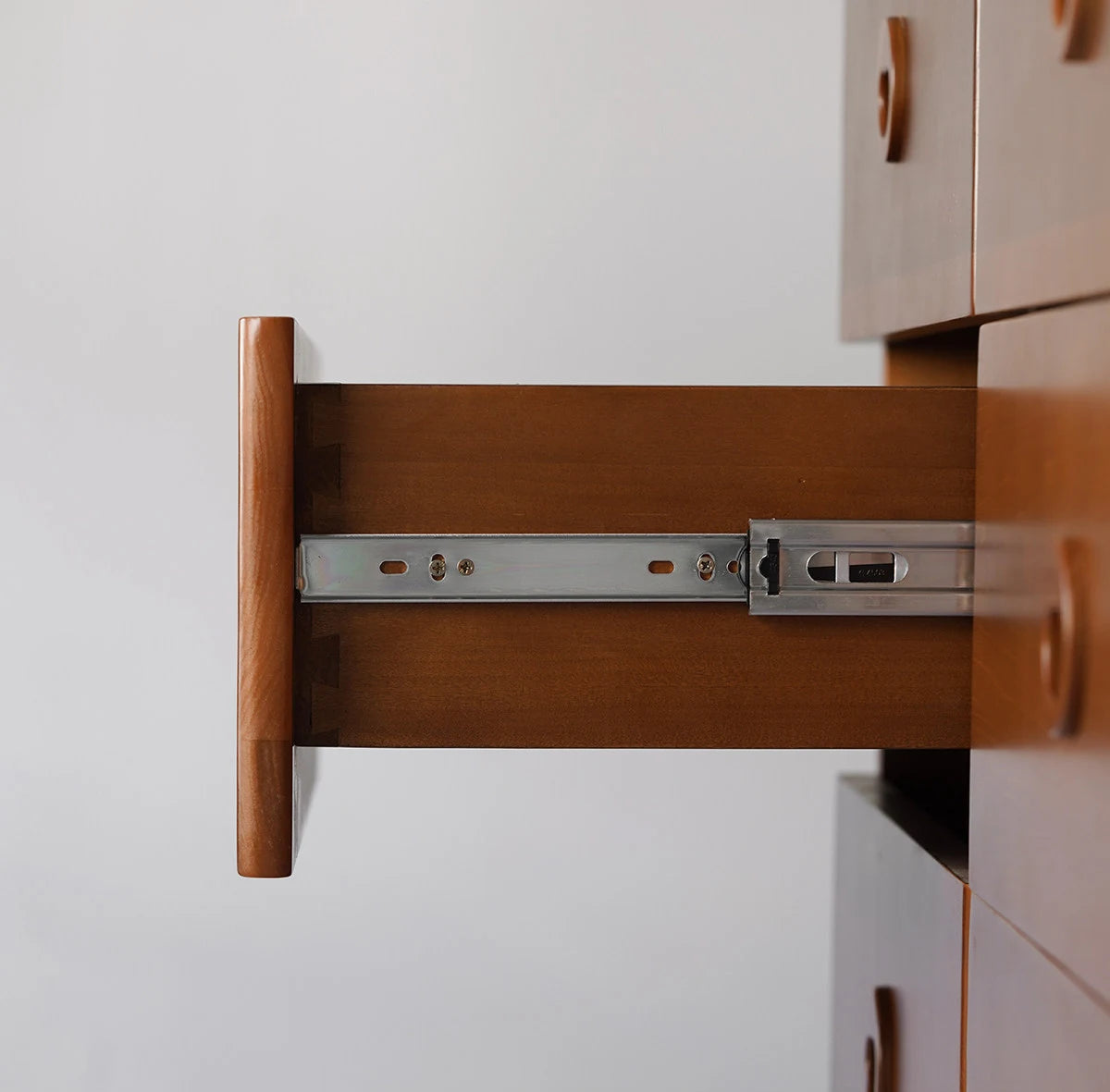 ידיות שקועות בעיצוב עגול - משולבות בחזית המגירה. מסילות עם מנגנון סגירה שקטה ואיטית.