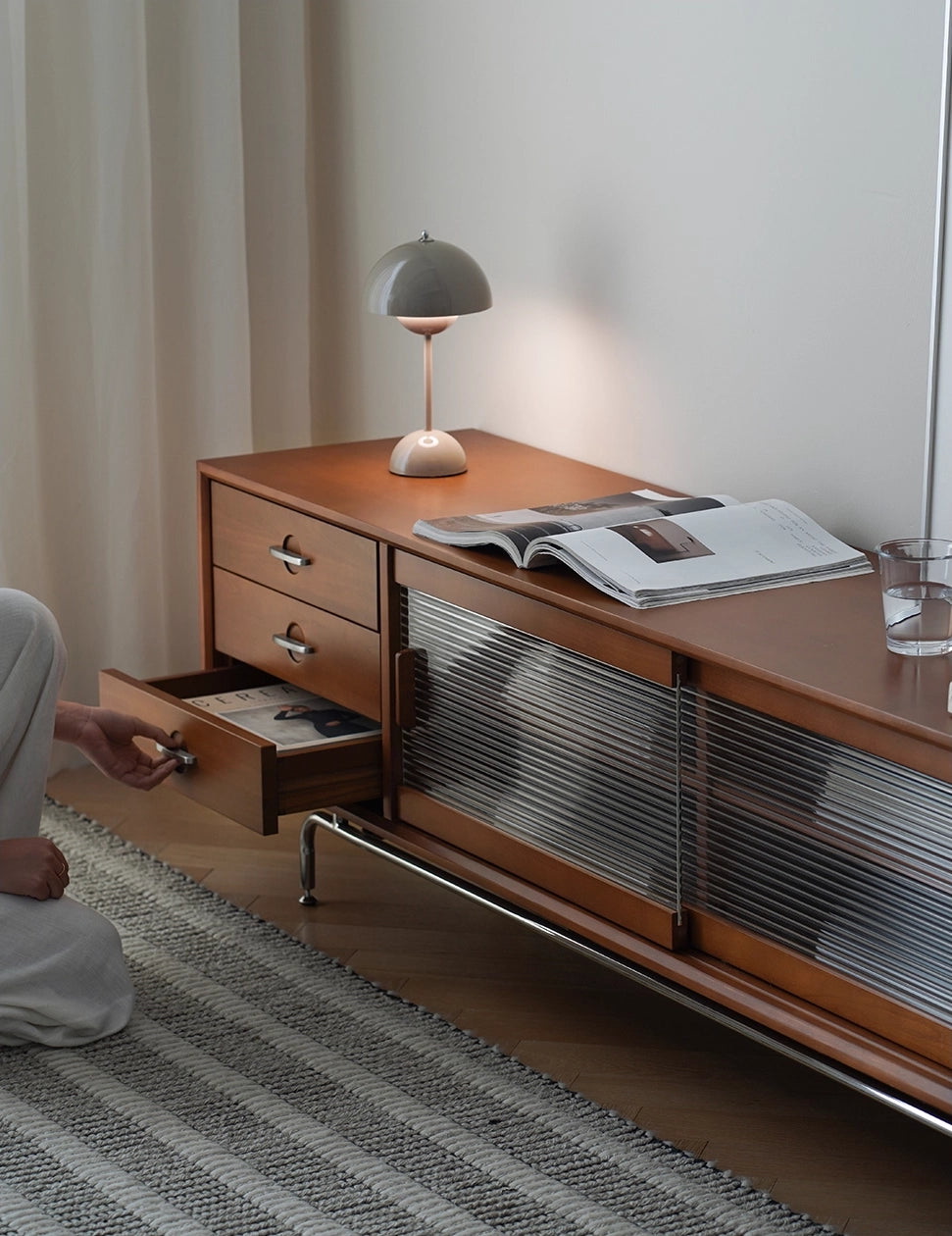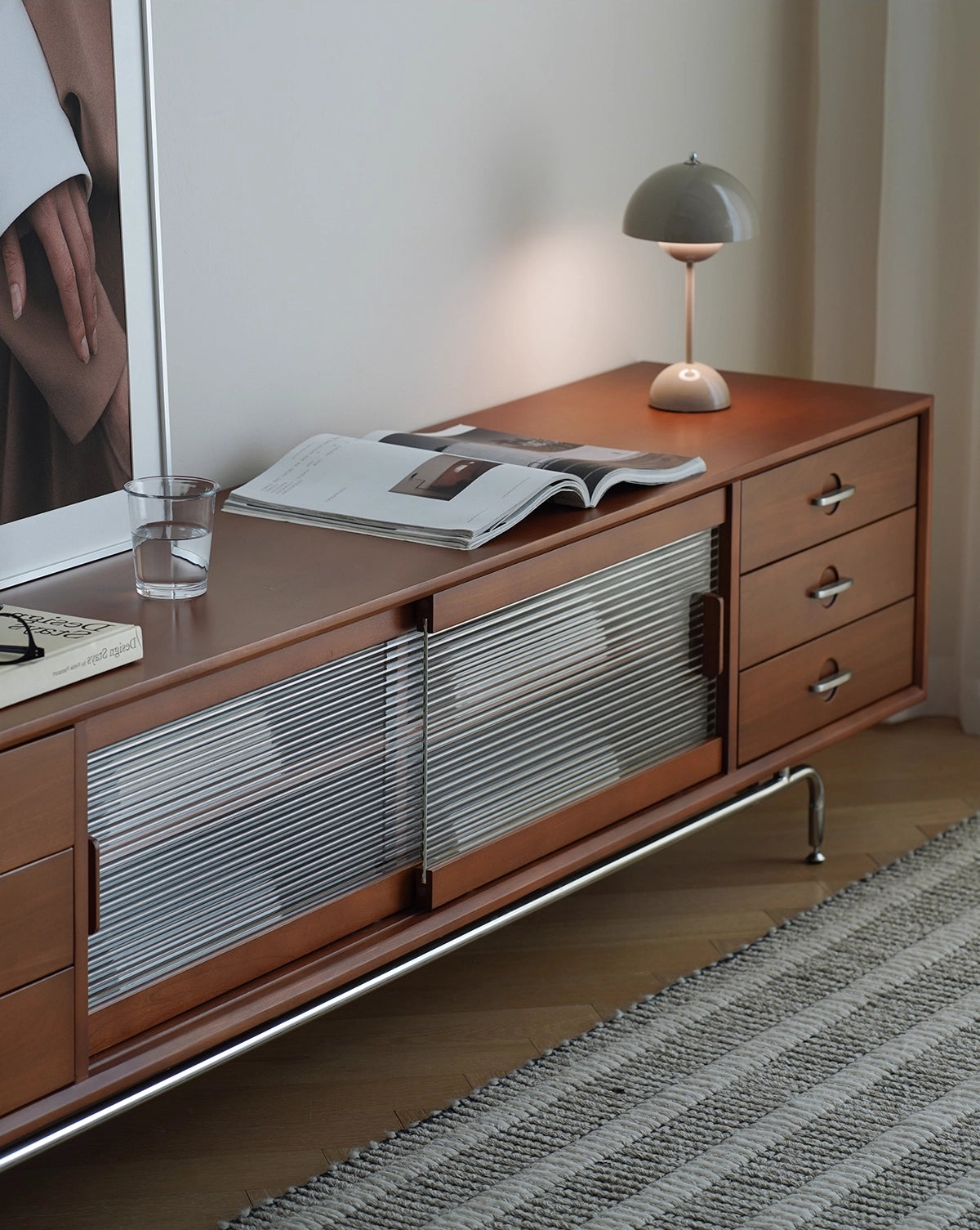 חומר : עץ צפצפה מלא, זכוכית, רגלי נירוסטה מלוטשת ברמת 8K