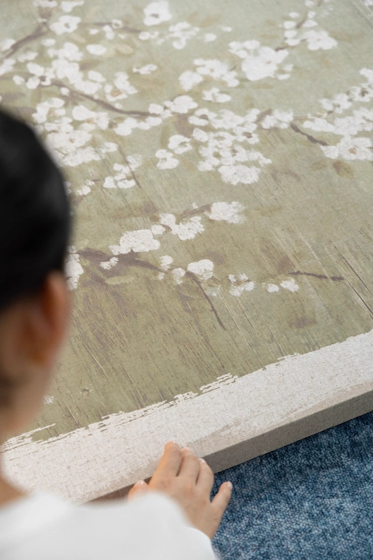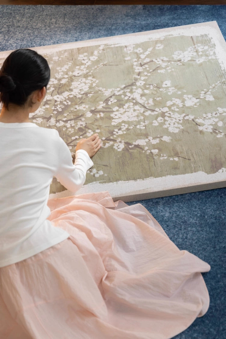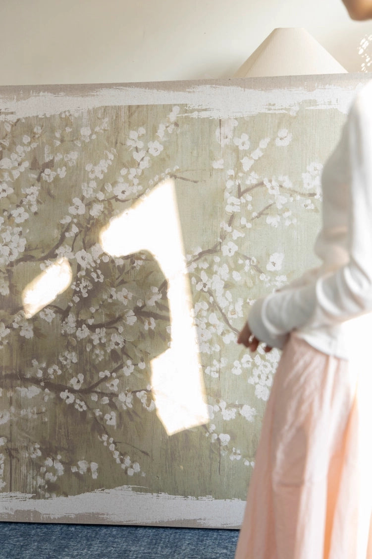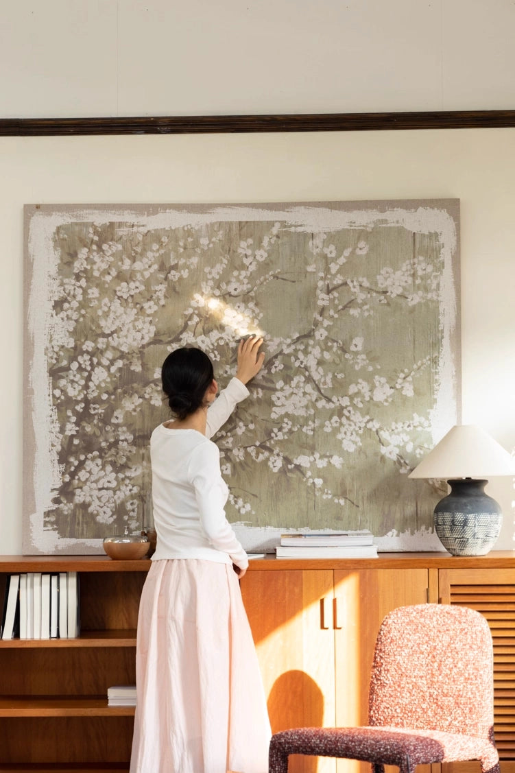 עשוי מבד פשתן טבעי, הנותן מרקם גס־עדין, מאוד אותנטי וטבעי. יצירה בסגנון אומנותי מזרחי, ללא מסגרת, ללא זכוכית.